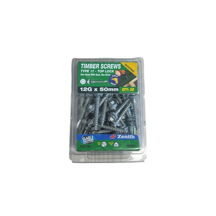 - ZENITH 12g-50mm TIMBER SCREW HEX HEAD WITH SEAL (50 Pack)