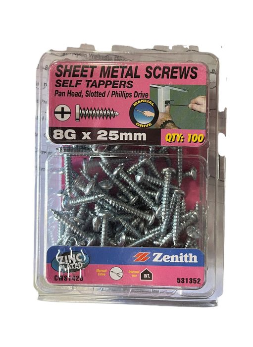 - ZENITH 8g-25mm SHEET METAL PAN HEAD SCREW (100 Pack)
